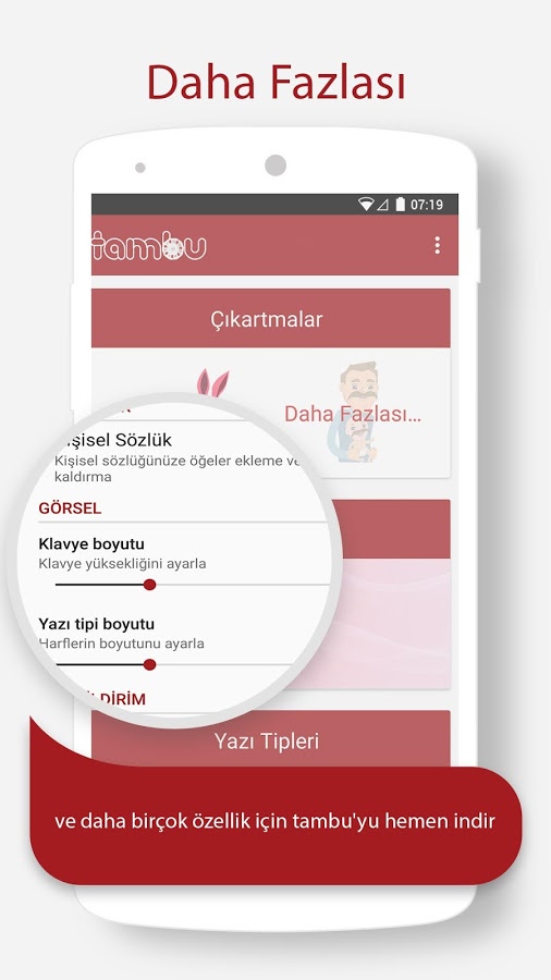 “Tambu Klavye, Android cihazlarınızda kullanabileceğiniz ücretsiz olarak sunulan yerli klavyedir. ”